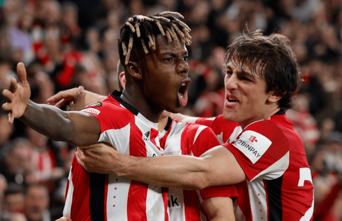 欧联杯这一夜进行了1/8决赛次回合的多场比赛,结果踢出了不少疯狂的剧情,各有悲喜。罗马此役来到客场挑战毕尔巴鄂竞技。首回合罗马2-1险胜。但没想到这一次罗马输了,两回合惨遭翻盘出局。胡梅尔斯在第11分钟就因为铲人犯规被罚下,导致罗马早早少一人作战。这是比赛的重要转折点。尼科-威廉斯为毕尔巴鄂竞技首开纪录。下半场贝尔奇切和尼科-威廉斯各进一球,把比分扩大为3-0。直到比赛最后时刻,罗马才凭借点球扳回一球。最终罗马1-3输了,总比分3-4被淘汰出局。
