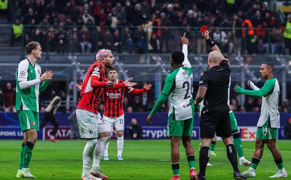 本赛季意甲豪门AC米兰陷入了一片混乱之中。在欧冠淘汰赛附加赛的次回合比赛中,红黑军团在主场以1-1战平费耶诺德,最终总比分为1-2遗憾无缘16强。比赛中,特奥在第44分钟因拉人被出示黄牌,之后又在禁区内假摔被出示第二张黄牌,最终染红被罚下场。特奥这种毫无脑子犯规的表现导致了米兰冬窗投入的大笔资金和晋级奖金的丧失,俱乐部面临的损失是巨大的。或许可以说,荷甲第四淘汰意甲第七,看似合情合理。